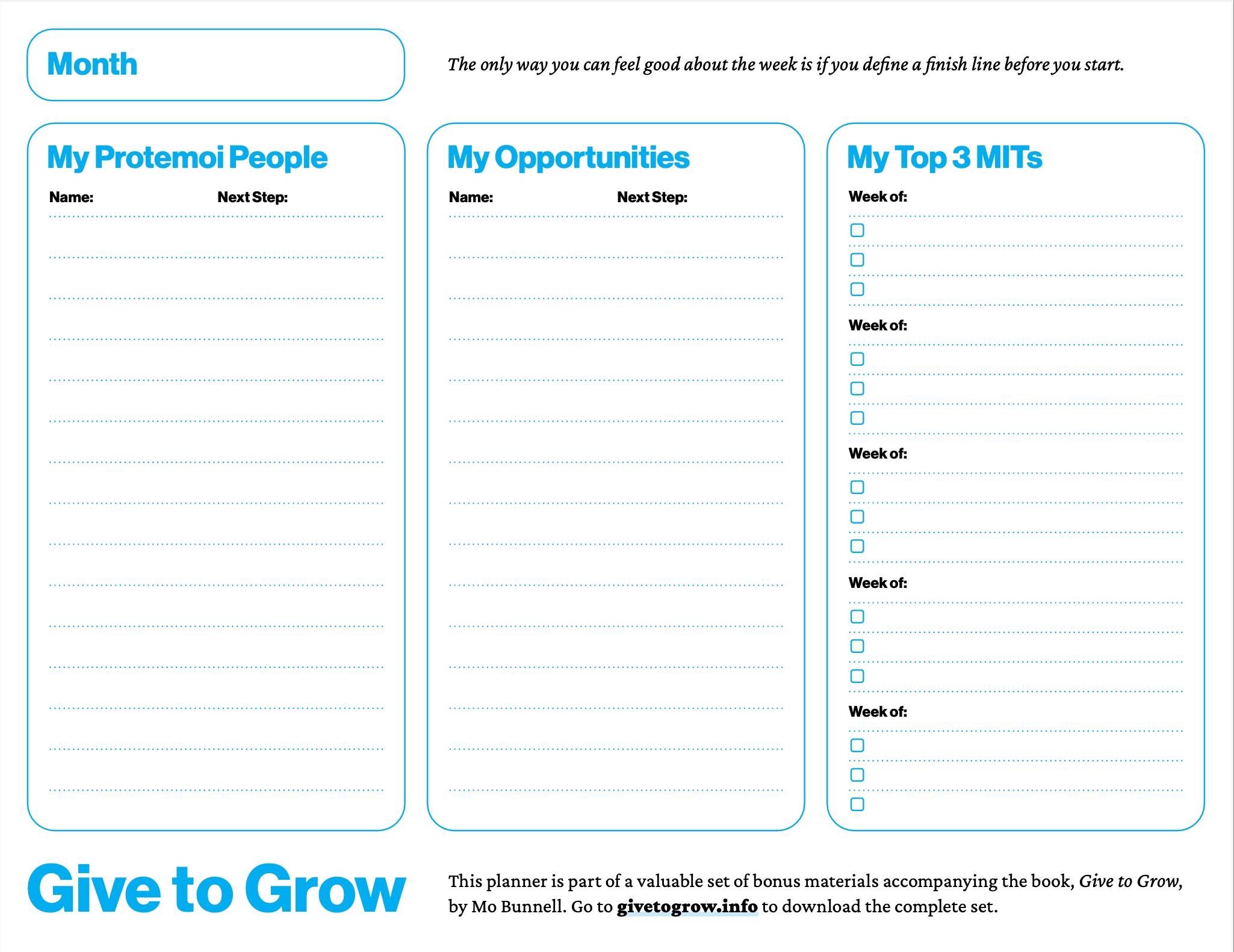 Download this worksheet to track your Protemoi people, opportunities, and weekly MITs. By signing up you also are opting in to also receive the GrowBIG Playbook newsletter.